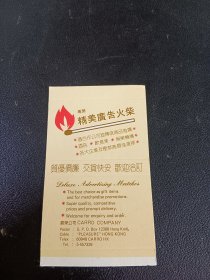 罕见!香港全新未使用火花卡标《香港至裕行实业有限公司经营中国广告火柴 火花》1枚,9.1*5.6