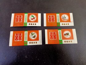 全新未使用火花卡标《红双喜 珠城 动物 火花:金鱼、喜鹊、蝴蝶、鸳鸯成双成对》全套4枚,蚌埠火柴厂出品