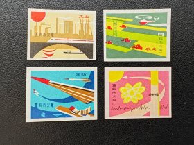 罕见!早期全新未使用火花卡标《体育 火花》全套4枚,蚌埠火柴厂出品,12.2*4.6