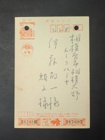 【24020111】冈本隆三(1916年生,1937年东京外国语学校中国语部毕业,原横滨国立大学教授、日中文化交流协会会员。中国问题专家,曾在多所大学任教。有大量著述,研究领域涉及中国各个方面。曾翻译了《儒林外史》《老舍作品集》及《杂感集》《丁玲作品集》等多部作品)致伊藤敬一(东京大学、中京大学教授,日本著名的汉学家、老舍研究专家,日中友好协会会长、名誉会长)年贺状(贺年卡、明信片)