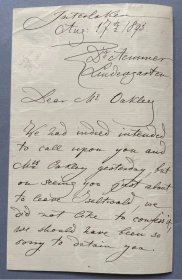 史上最伟大女钢琴家 浪漫主义时期最重要的钢琴家之一 罗伯特·舒曼之妻 克拉拉·舒曼(Clara Schumann)1895年亲笔信 以少见的英语书写