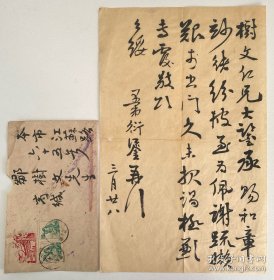 演员康泰信札两通,附一枚实寄信封