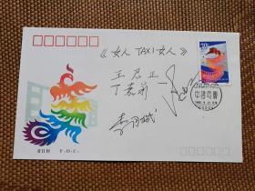 【超珍罕 王君正 潘虹 丁嘉丽 及摄影 李月斌 签名 导演 王君正 题写《女人 TAXI 女人》】中国电影 首日封 附赠 女人 TAXI 女人 精美 海报三张(100X69 71X57) ==== 1991年