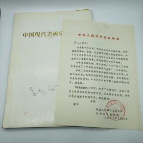 当代草书大家 、北京大学法律系教授李志敏签名,日中友好会馆、中国人民对外友好协会1986年编印《中国现代书画家作品集》一册(附中国人民对外友好协会1987年 致李志敏 感谢其捐赠书画筹建“日中友好会馆”感谢信一件)