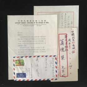 006【同一来源】六十年代 著名港台小说家,被誉为“台港第一快手”独孤红(李炳坤)1990年 致萧-德-荣信札一通一页、 中华民国著作权人协会 1990年 致萧-德-荣信札一通一页 均附实寄封(提及《绝代天香》著作代理交由马-振-铭先生委托等事宜)HXTX309267