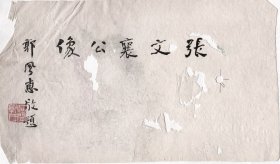 原阳谷县旅游局局长张学峰信札(寄送聊城地区政协主席许继善的信件),小楷毛笔写的信。二人都是金瓶梅学会会员,信封是“首届国际金瓶梅学术讨论会筹备委员会”专用信封,内容谈及金学会议后的反应。