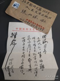 钱学昭(著名女诗人、师从中国著名诗画家溥儒、钱学森堂姐)致 吴寿松(著名装帧大师) 诗稿信札 一通1页 (带实寄封)签名2处 和钱老的字很像