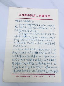 刘铭锐(甘肃甘谷县人,1924年生,甘肃省皮肤性病学的奠基人、兰州大学第二医院皮肤科创建人,著名皮肤病学家)信札一通两页