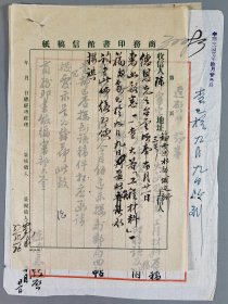 【商务印书馆旧藏】民国工程材料学专家 陈德恩 民国三十七年毛笔信札一通一页、及商务印书馆公函两页HXTX344591