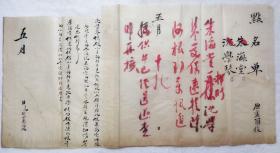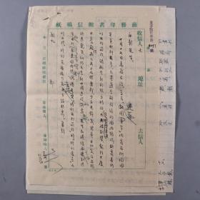 商务印书馆旧藏:著名教育家、曾任上海商务印书馆总经理、光华大学校长 朱经农 签批商务印书馆信件批核单一页;东北沈阳交通部特派员办公处运物组 刘志宏 1946年毛笔信札一通两页(关于欲将《运输学》交商务出版等事)HXTX343820