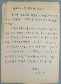著名书画鉴定专家、中国书法家协会理事 金运昌 1987年手稿《蔡晓凤<隋曹植碑>初探》一页HXTX410390