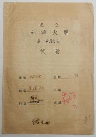 词学大家 龙榆生 签批 其弟子李汉怡 私立光华大学毛笔 试卷 一件两面 HXTX343224