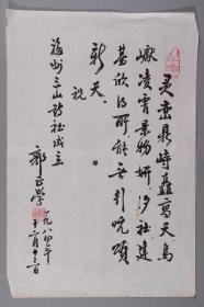 W 【同一来源:均为福建三山诗社旧藏】老诗人 郭正学 毛笔诗稿“福州三山诗社成立纪念”一页(钤印:郭正学)HXTX246557