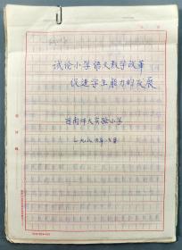 胡-学-贽、刘-曼-华夫妇旧藏:西南师范大学实验小学 黎明 1986年手稿《试论小学语文教学改革促进学生能力的发展》28页、油印件《充分发挥景山学校语文教材的特点努力提高学生的读写能力》17页HXTX283707