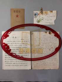姚学礼(甘肃省作协第四届副主席 平凉市文联第一届主席)手稿《春盘》4页 及 黄远林(《美术史论》杂志副主编 中国美术家协会漫画艺委会学术秘书)借书证 等 资料 共14页『坐拥百城LHY20250903A45』