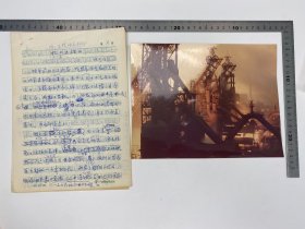 潘德润(肖像摄影艺术家、书籍装帧家)旧藏:潘德润 《忆<出铁>》手稿 五页 完整、致 伍素心 信札、方学辉(1933-2022,《参考消息》编委,摄影家)致 潘德润 信札 及 相关 潘德润 1957年 拍摄 鞍山钢铁厂 《出铁》原底片 放大 大尺寸 照片 (该照片在第六届世界青年和平友谊联欢节国际摄影艺术比赛中获得银牌)附 《中国摄影》1957年 第3期 出版物 复印件 合售【250624 06】