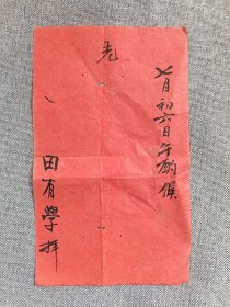 民国或更早晚清 田有学 拜贴一张 约15*8厘米