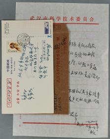 胡-学-贽、刘-曼-华夫妇旧藏:北师大原党委副书记、武汉北师大校友会名誉会长 张斧 1991年信札一通一页 及贺卡一件 附实寄封一枚 HXTX284139