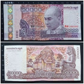 柬埔寨钱币 20000瑞尔纸币 2017年 (旧票)