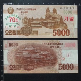 朝鲜钱币 5000元纸币 2019年 中朝建交70周年纪念