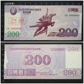 朝鲜钱币 200元纸币 2008年 样票(号码都是0)