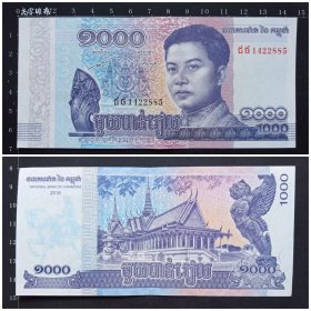 柬埔寨钱币 1000瑞尔纸币 2016年 全新