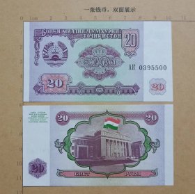 塔吉克斯坦钱币 20卢布纸币 1994年 全新