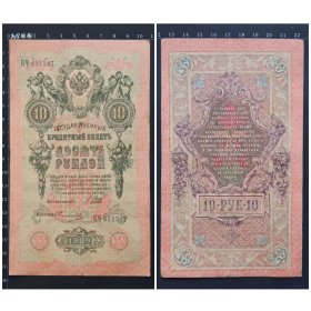 沙俄钱币 10卢布纸币 1909年(旧票)