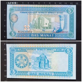 土库曼斯坦钱币 5马纳特纸币 1993年 全新