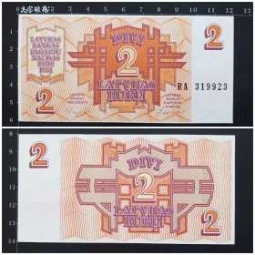 拉脱维亚钱币 2卢布纸币 1992年 全新