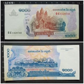 柬埔寨钱币 1000瑞尔纸币 2007年 (泛黄)