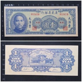广东省银行 大洋票 壹圆 1元纸币 民国三十八年钱币