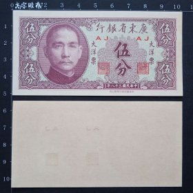 广东省银行 大洋票 伍分/5分纸币 民国三十八年钱币 (实图95品)