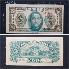 广东省银行 大洋票 伍角 5角纸币 民国三十八年钱币