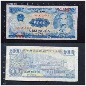 越南钱币 5000盾纸币 1991年 (旧票实图)