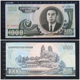 朝鲜钱币 1000元纸币 2002年 (有黄斑)