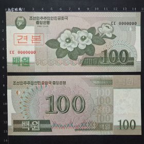 朝鲜钱币 100元纸币 2008年 样票(号码都是0)