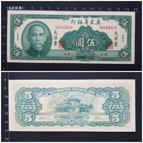广东省银行 大洋票 伍圆 5元纸币 民国三十八年钱币