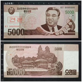 朝鲜钱币 5000元纸币 2008年 样票(号码都是0)