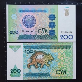 乌兹别克斯坦钱币 200索姆纸币 1997年 全新