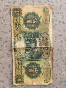 民国原版老纸币原票。中国银行山东5元伍圆。无字规。包老保真怀旧特价处理