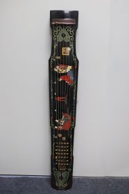 珍藏木胎漆器彩绘镶点贝壳人物民族古琴乐器