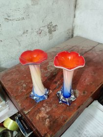 七八十年代老琉璃插花花瓶(一对仅一件)