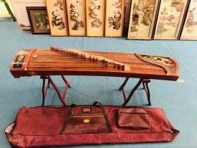 收来一个早期的上海民族乐器一厂出品的敦煌牌古筝!品相一流!孔雀图案螺钿!十分古典!带调音器 扳手 指甲用的等!正常弹奏!正厂大牌出品!音质有保障!使用佳品!