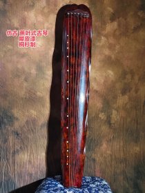 【蕉叶式古琴】 仿千年形制,裁蕉叶舒展之姿,桐杉为骨,犀皮漆作衣——朱红叠晕如霞落,纹理隐现若云生,抚之如触古木肌理,观之如赏传世旧藏。 七弦承太古之音,徽位星列映月痕,抬手间松风入弦,落指处余韵绕梁。既是案头清供的雅器,亦是可寄心魂的丝桐挚友。