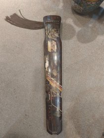 大漆 木胎 镶嵌 喜上眉梢 题诗 古琴