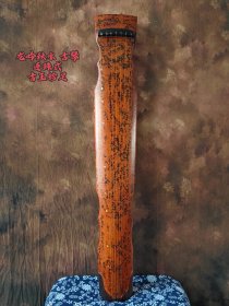 《梅梢月.变体连珠式》 音雄而坚,韵长而留,尤为难得。 长 宽 厚:弦长 108 CM,通长 120 CM,肩宽 20 CM,项宽:无,尾宽 13CM。 漆色断纹:朱红栗皮漆面,琴通体流水段纹。 琴材配件:桐木面板,梓木底 琴背铭文:梅梢月 音 色 ︰声音宏亮,具清琴音质特色。