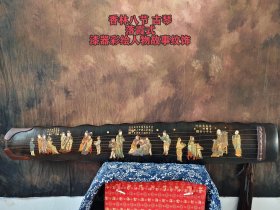 民国镶宝石描金人物桐木七弦琴 做工精致讲究,音质清脆,正常使用,带琴套
