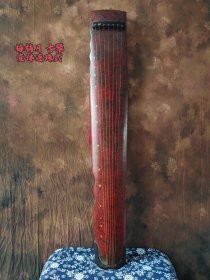 “龙吟秋水”琴 连珠式 古玉轸足 漆色断纹:面底皆犀皮金漆,发小蛇腹断,流水断。 琴材配件:杉木面板,梓木为底,玉徽;轸,足,岳山皆老红木制。 音色特点:音色松沉,皮鼓之韵,散、泛、按皆属上乘。