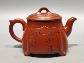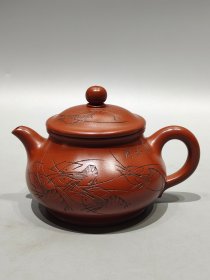 老珍藏,满身刻绘老紫砂壶一把,保存完整,收藏的佳品。